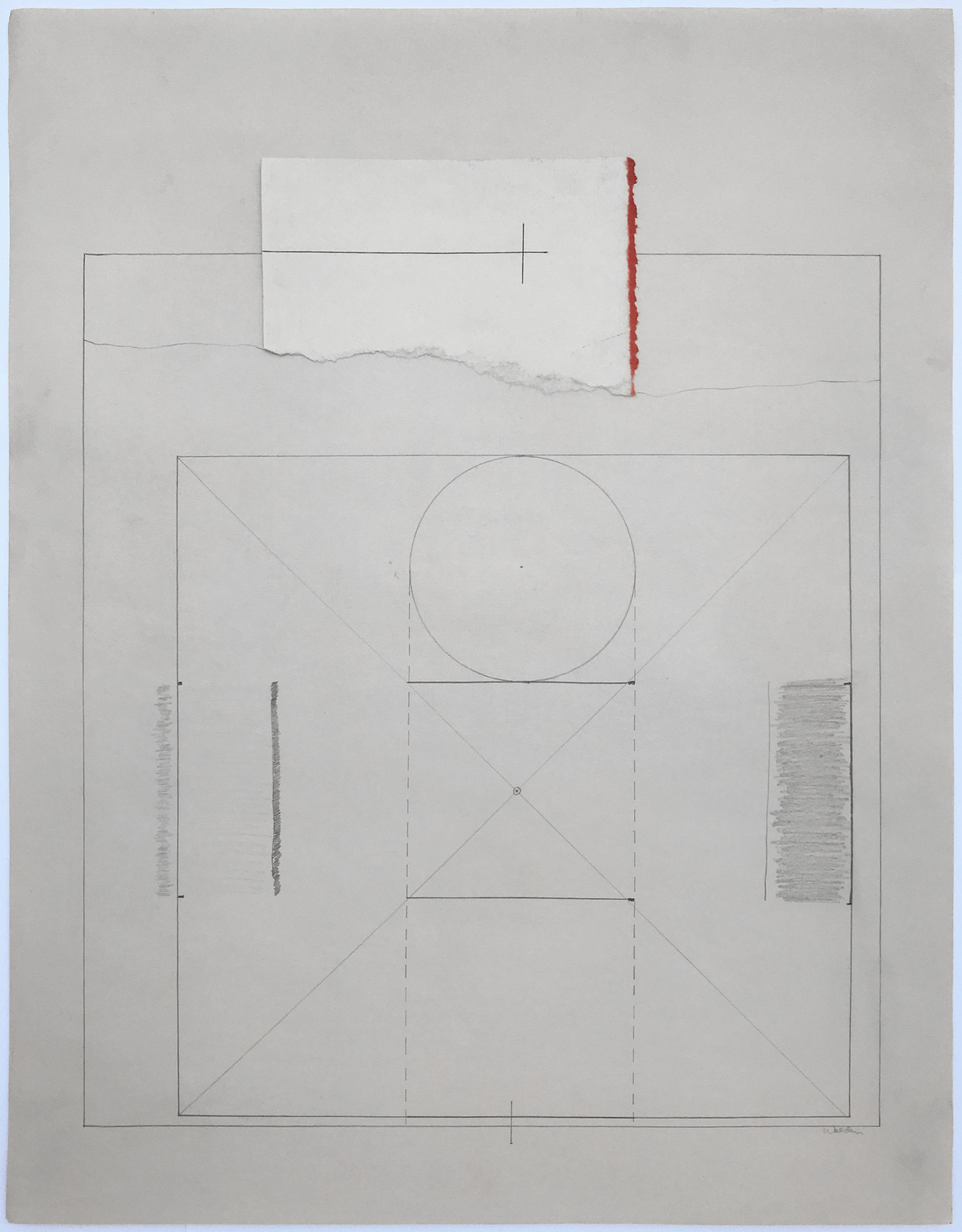 Ink, graphite and color pencil with collage on paper