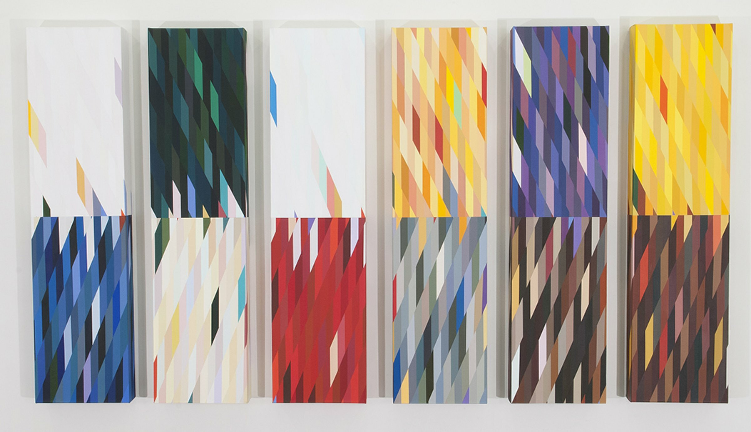 6 canvases 48" x 12" x 3¼" (1.2m x 30cm x 8cm) arranged 3¼" (8cm) apart