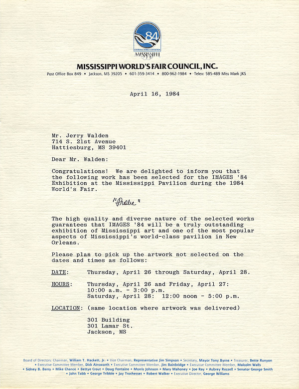 Documents, letters, exhibition catalogs, invitations, photographs and assorted items of interest…from Jerry's life and career.