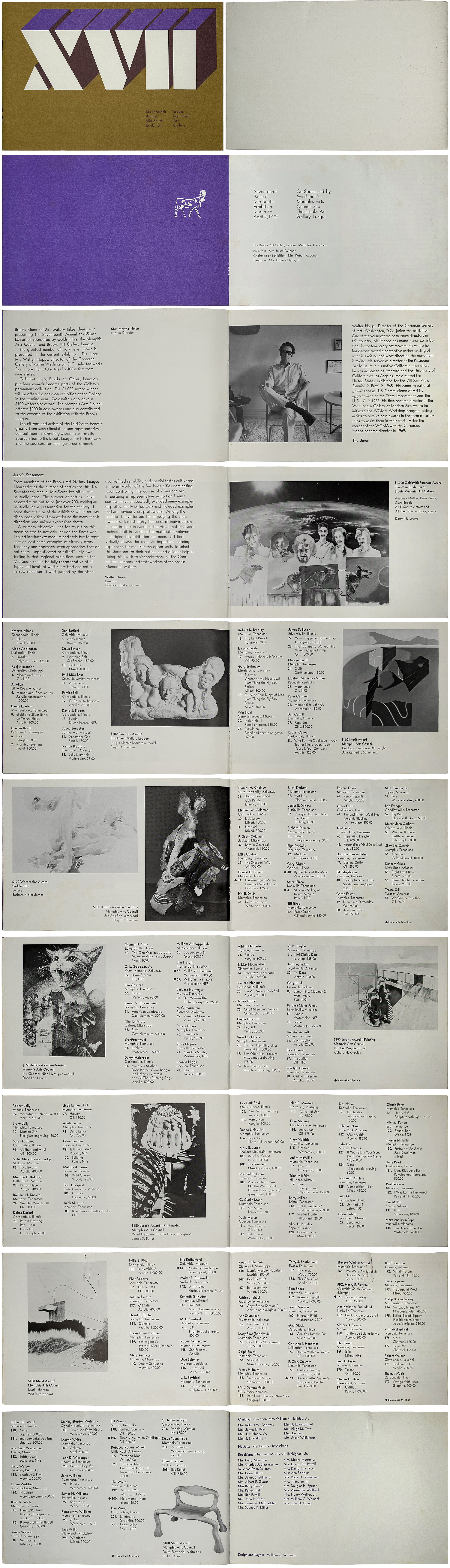Seventeenth Annual Mid-South Exhibition Catalog, Brooks Memorial Art Gallery (now the Memphis Brooks Museum of Art), Juror: Walter Hopps, Director of the Corcoran Museum of Art, Washington DC,