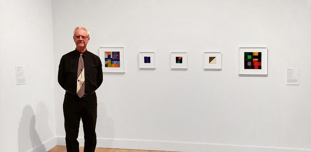 Jerry standing in front of his work included in the exhibition.