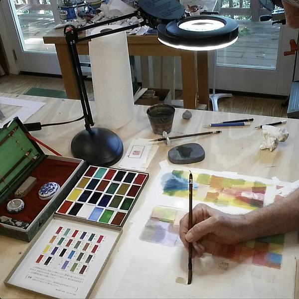 Jerry In His Rock Hill, SC Studio Experimenting With Traditional Chinese Ink And Brush Set Given To Him As A Gift, 2017