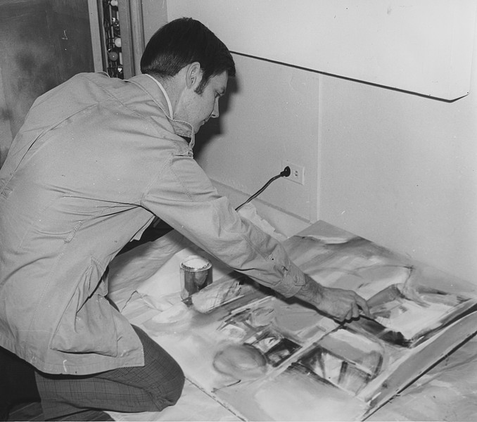 Jerry posing in his studio in Langdale, AL in 1968; adding the "finishing touches" to "Still Life With Chair".